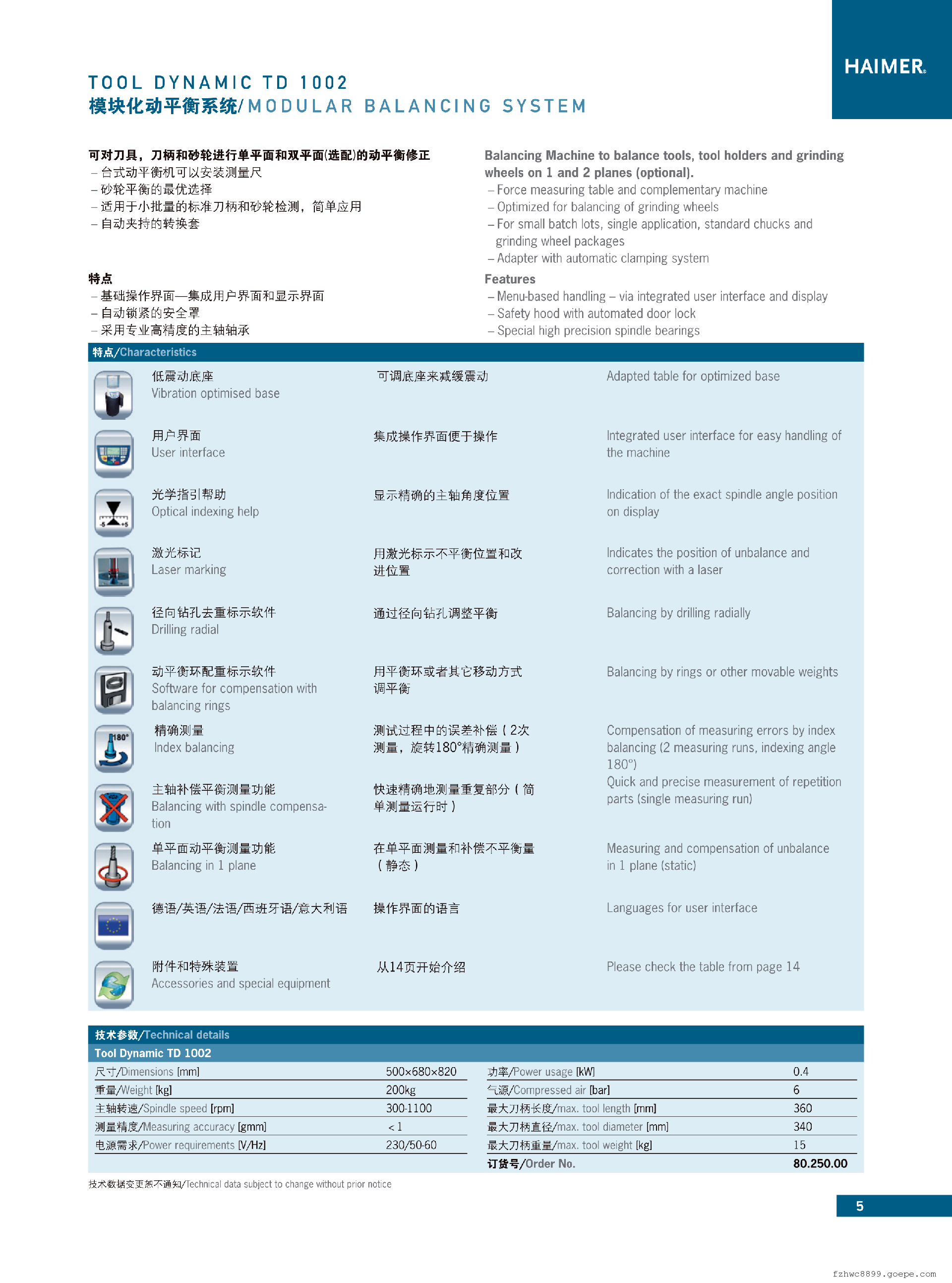- 德国翰墨HAIMER台式动平衡机 刀柄动平衡TD 1002