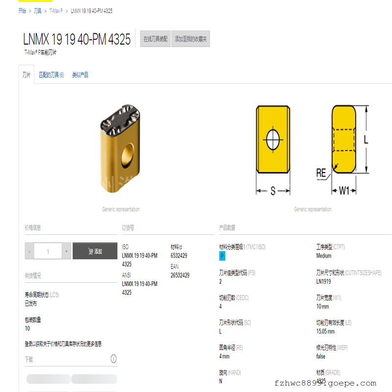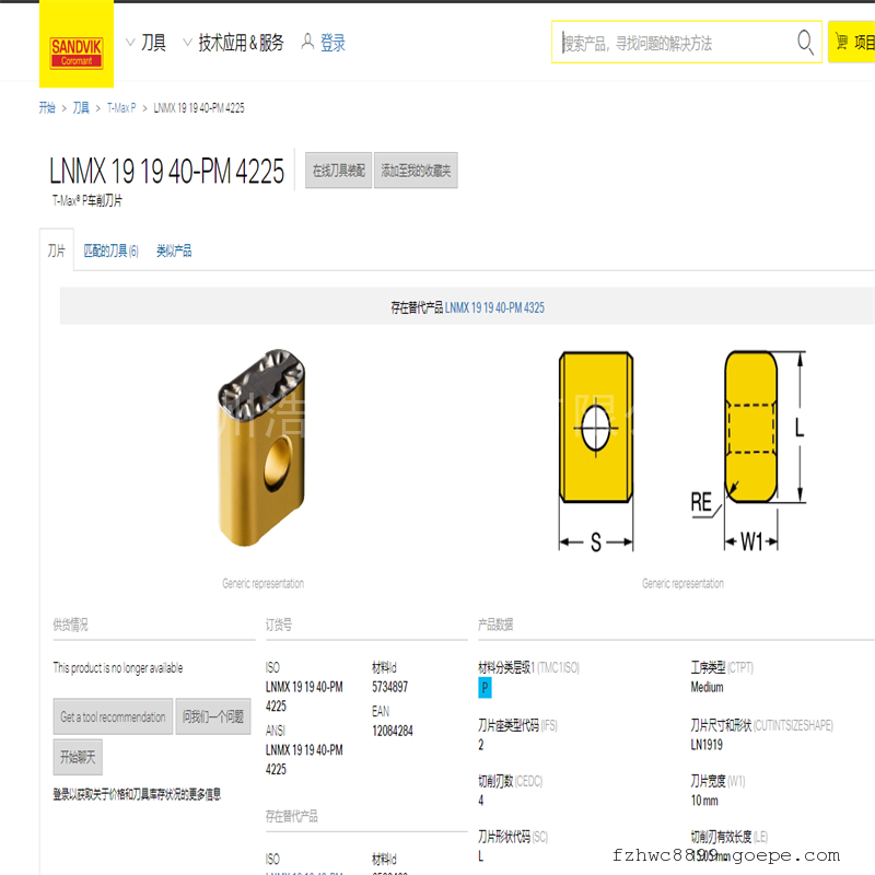 • SADVIK山特维克 刀片LNMX191940-PM4225